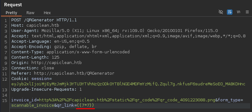With this session cookie, we gain access to the site’s dashboard, which has an invoice generator feature vulnerable to Server Side Template Injection (SSTI). We can exploit this to break out of the Jinja2 sandbox and execute arbitrary Python code, leading to Remote Code Execution (RCE) as the www-data user.